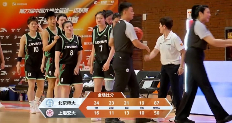 次节北京师大优势逐渐显现出来,张书璇两记三分气势如虹,加上李青阳和李妍熹连续冲击篮下得手,北京师大将分差拉大至17分完全控制局面。范文馨的三分帮助上海交大破荒止血,但这是上海交大最后3分钟里的唯一得分,张笑和张书璇末段连续拿分帮助北京师大取得47-27的领先结束上半场。