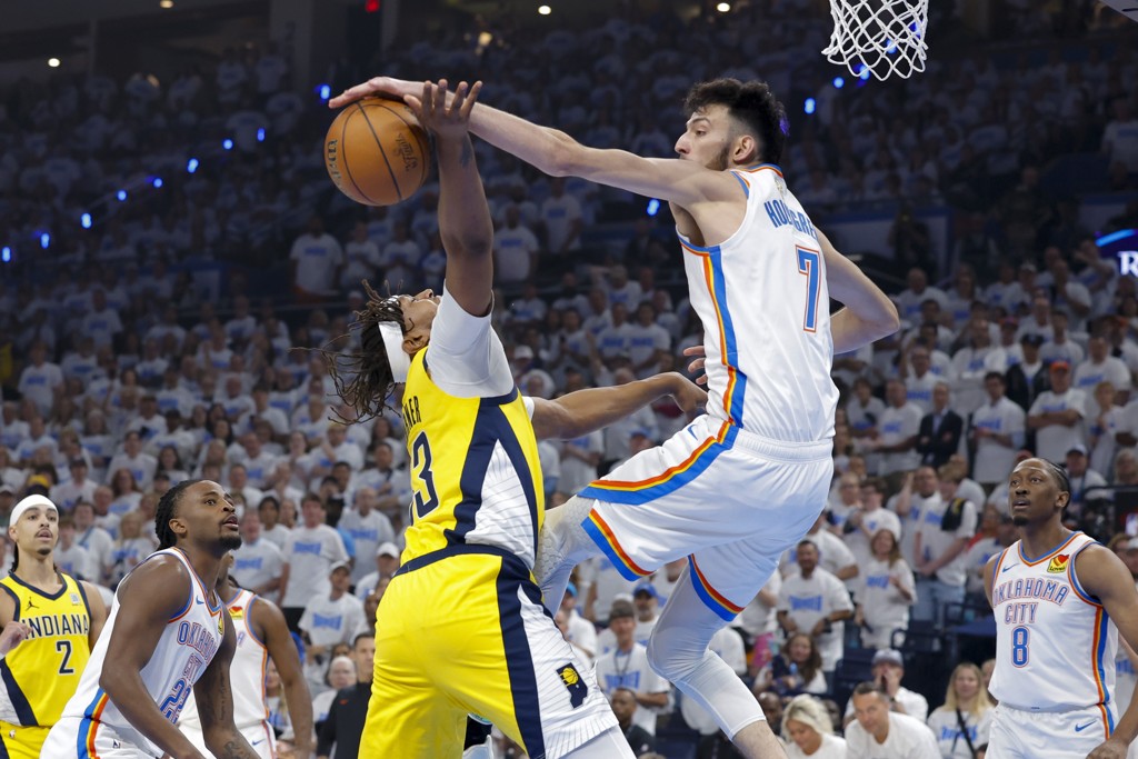 多特、卡鲁索、华莱士、亚历山大都能错位换防步行者内线,绕前、顶防、抄截能力迫使特纳此役出现了6次失误,托平3失误其中首节2次传球回场违例,必须承认的是雷霆防守端的压迫感在今年所有季后赛球队之中确实独一档。