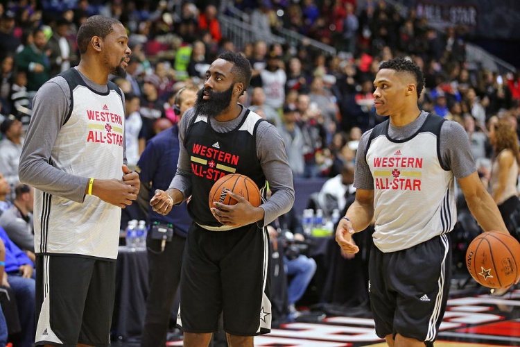 哈登评最佳队友阵容:威少+欧文+自己+杜兰特+恩比德