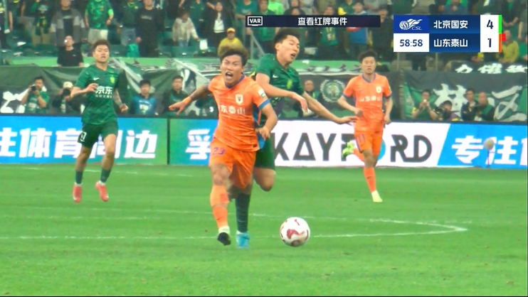 曹永竞虽然破坏了泰山队的单刀机会,但并不是一个绝对的单刀射门机会,判罚红牌有裁判员找平衡的嫌疑,当然大比分领先的国安也无所谓了。”