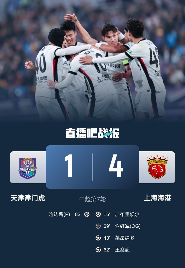 4月16日讯 中超第7轮,天津津门虎主场1-4不敌上海海港,算上本场津门虎面对海港已经遭遇五连败。