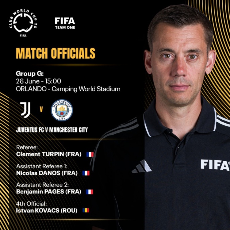 世俱杯27日比赛裁判:蒂尔潘吹尤文曼城 马宁皇马萨尔茨堡第四官员