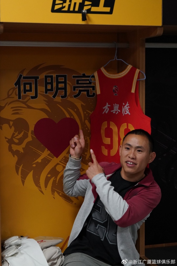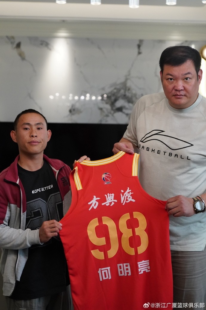在去年12月2日和吉林队的比赛当天,浙江广厦与何明亮签订了“CBA球员一日合同”,并赠予他一件印有自己名字的98号专属球衣。“99和88是俱乐部两个吉祥物的号码,各取一个数字,代表了俱乐部对他的祝福。”浙江广厦篮球俱乐部总经理缪寿守说。