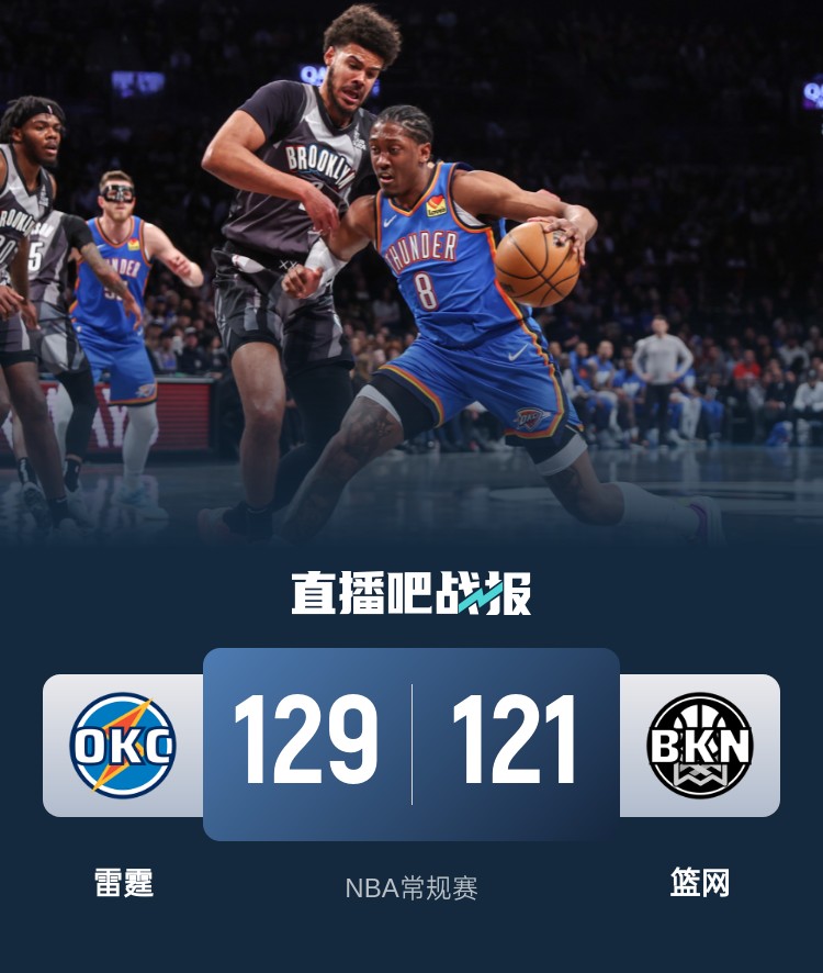 亚历山大27+6 霍姆格伦22+17 夏普25+15 雷霆4人20+逆转篮网