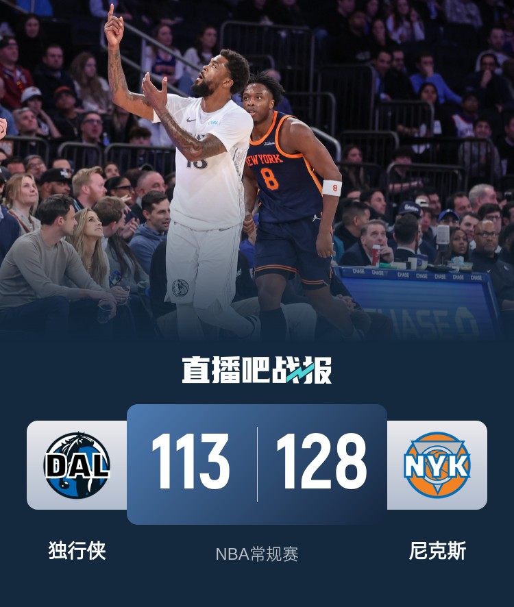 3月26日讯 NBA常规赛,尼克斯今日迎战独行侠,前者上场比赛战胜奇才,后者则是取得两连胜,此役浓眉和布伦森等人缺战。