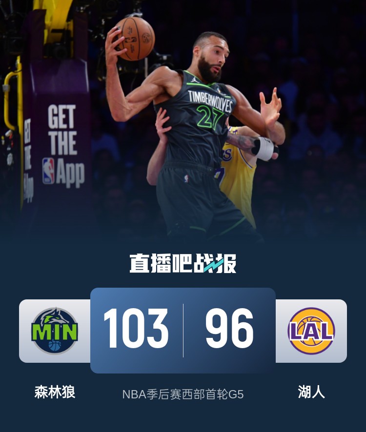 戈贝尔暴虐湖人内线27+24!詹东50分 湖人1-4负森林狼出局!
