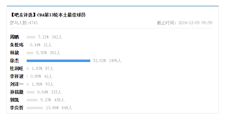 【吧友评选】CBA第13轮本土最佳球员:徐杰