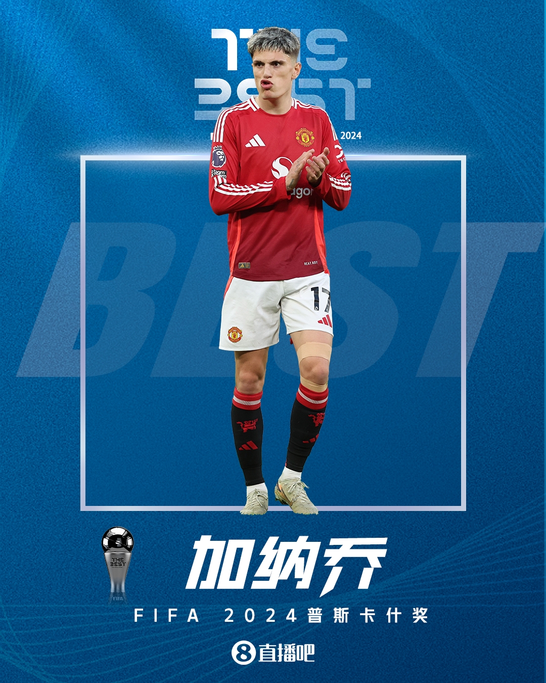 FIFA官方公布了2024年度普斯卡什奖得主,加纳乔倒钩获奖。