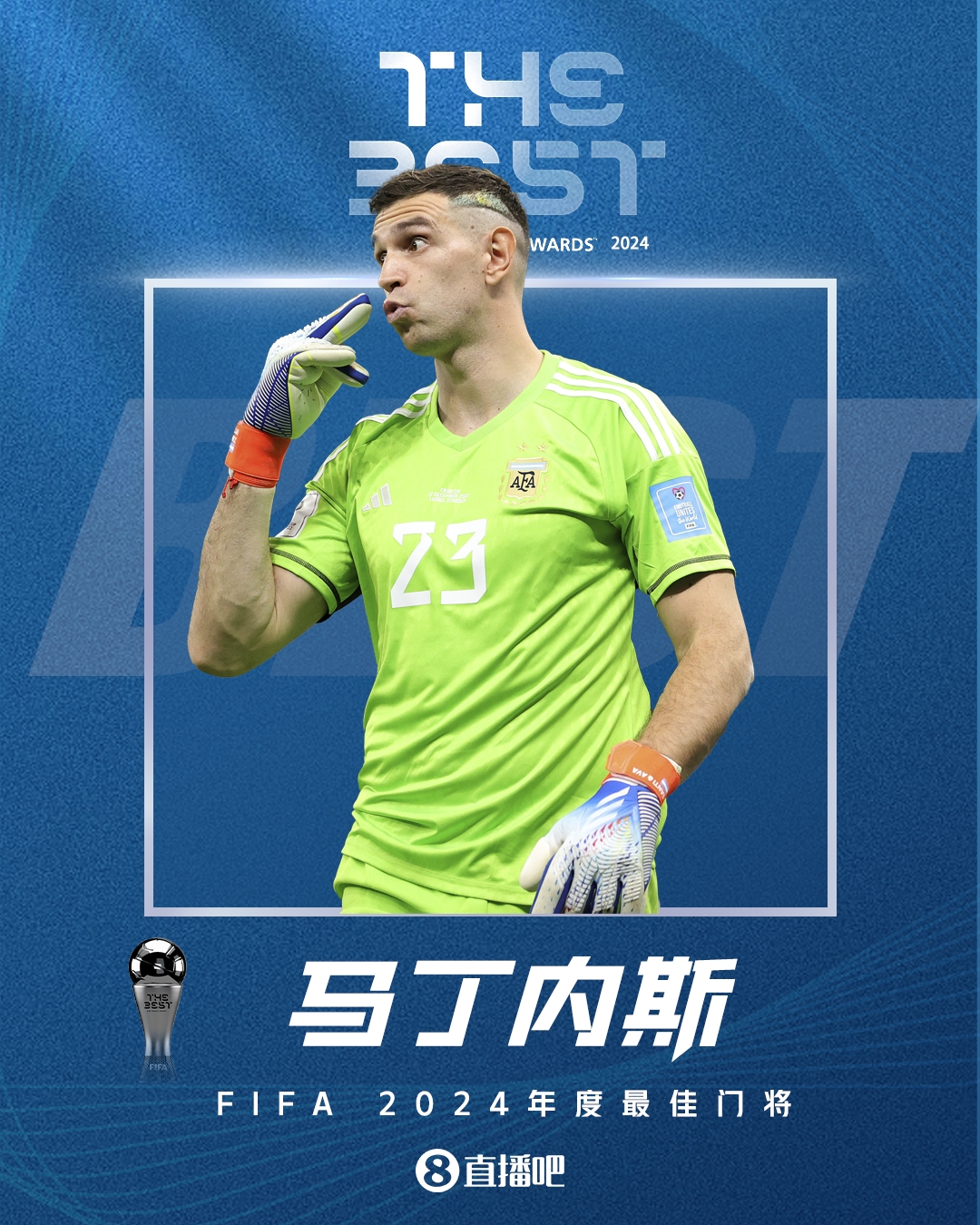 三年两获奖!官方:马丁内斯当选FIFA2024年度最佳门将