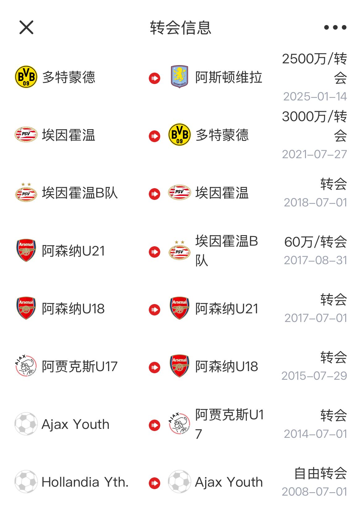马伦的转会当时为阿森纳带来了不到60万英镑的收入,此后马伦在2021年夏天以3000万欧的转会费加盟多特,本月冬窗2500万欧加盟维拉,兜兜转转终于登陆英超赛场。