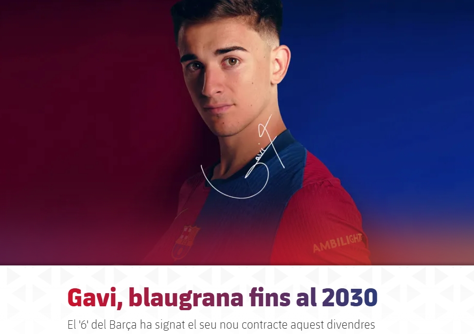 巴塞罗那足球俱乐部与球员加维就续约达成协议,他将在俱乐部效力至2030年6月30日。