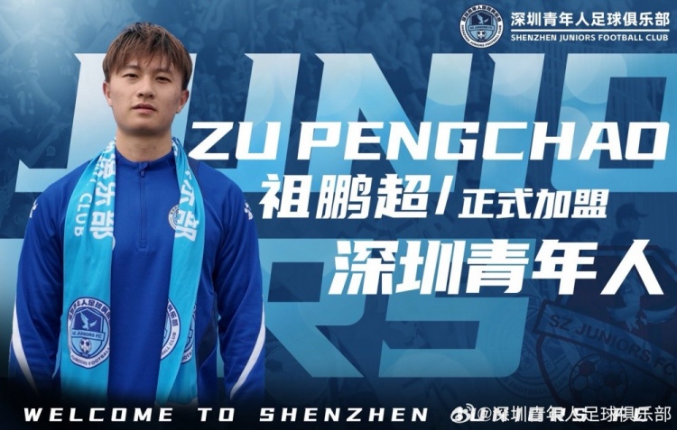 经与球员本人友好协商并达成一致,祖鹏超正式加盟深圳青年人足球俱乐部。