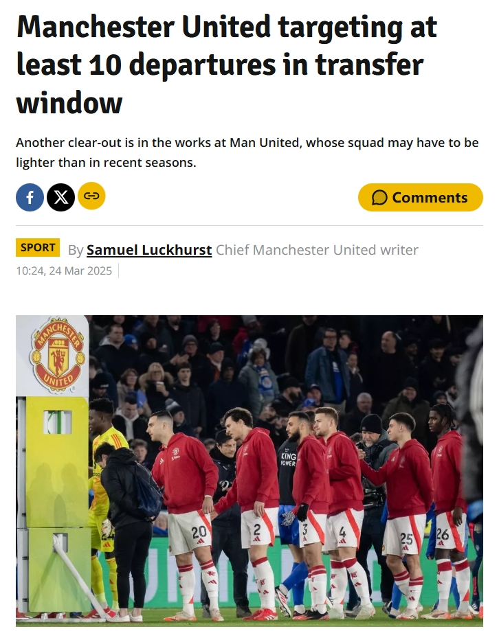 03月24日讯 据《曼彻斯特晚报》首席记者Samuel Luckhurst报道,曼联再次计划在今年夏窗对球队阵容进行大清洗,曼联希望至少送走10名阵中球员。