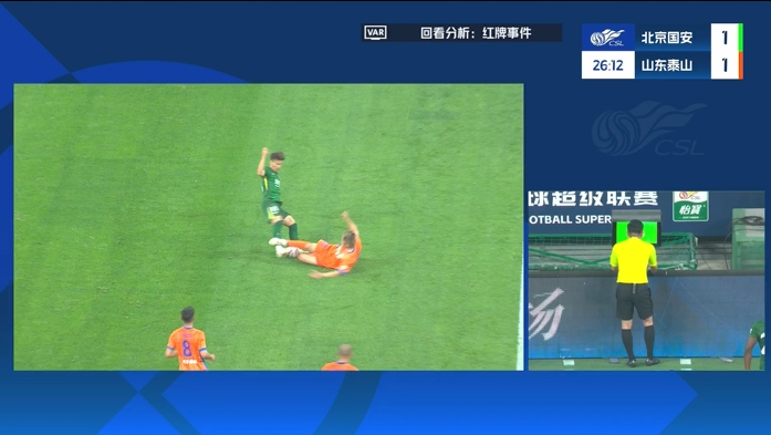 曹永竞虽然破坏了泰山队的单刀机会,但并不是一个绝对的单刀射门机会,判罚红牌有裁判员找平衡的嫌疑,当然大比分领先的国安也无所谓了。”