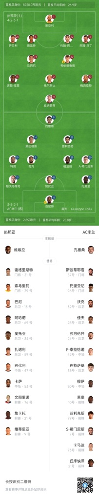 热那亚替补:31-谢格里斯特、39-索马里瓦、13-巴尼、69-阿哈诺、34-奥托亚、59-扎诺利、47-巴代利、53-卡萨、76-文图里诺、21-埃卡托、9-维蒂尼亚