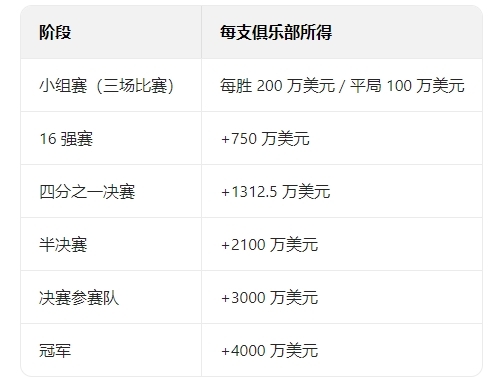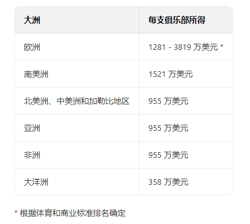 世俱杯最新奖金(参赛奖+表现奖)排名如下