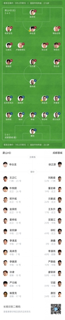 *赛前蓉城变更替补名单,徐虹代替韦世豪进入替补名单。