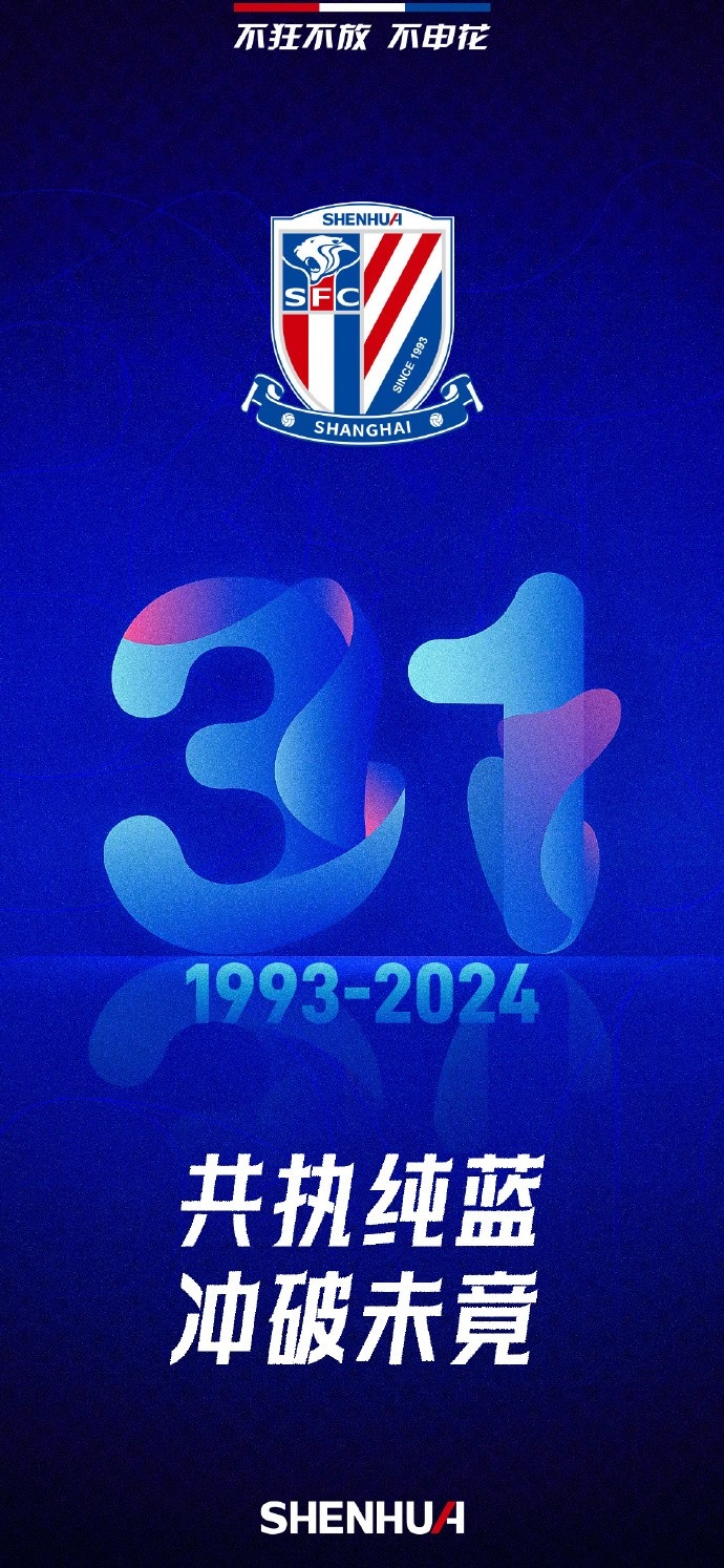不狂不放不申花!申花今天迎来31岁生日,本赛季获得中超亚军